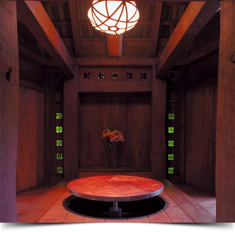 “The Poet’s House” is a book length poem written in longhand. Four voices speak—The Four Winds, The Buddha, The Coyote, and the Poet. (I think this is right; I was too taken with the moment to jot notes.) The lines for each voice are written in a different color. And many lines of the poem are inscribed in the house itself, in the boards and even in the strands of the light fixture. I expect architecture and poetry may come together this fully in other places in the world, but I don’t know of any.