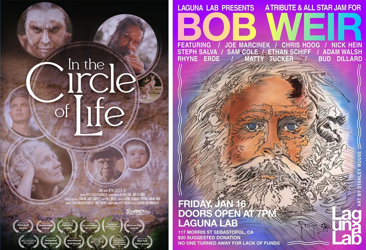 World premiere of a film about the wisdom of indigenous Australia by local filmmakers, plus a tribute concert and gathering in honor of The Grateful Dead's Bob Weir