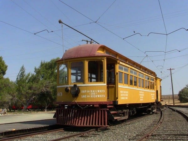 Codoni started by describing the “Interurban Era,” a time when trains created a vital connection between rural communities and their urban centers. Interurban electric trains would give service to places where the larger, steam-powered, mainline trains couldn’t. While large mainline trains required a dedicated crew, electric trains were cheaper and only required a few people to run. Sebastopol got its first glimpse of the interurban era on April 5, 1904, when the first trains started arriving to replace horse-drawn carts. These passenger trains ran down Main Street, right where automobiles would drive in the coming years.