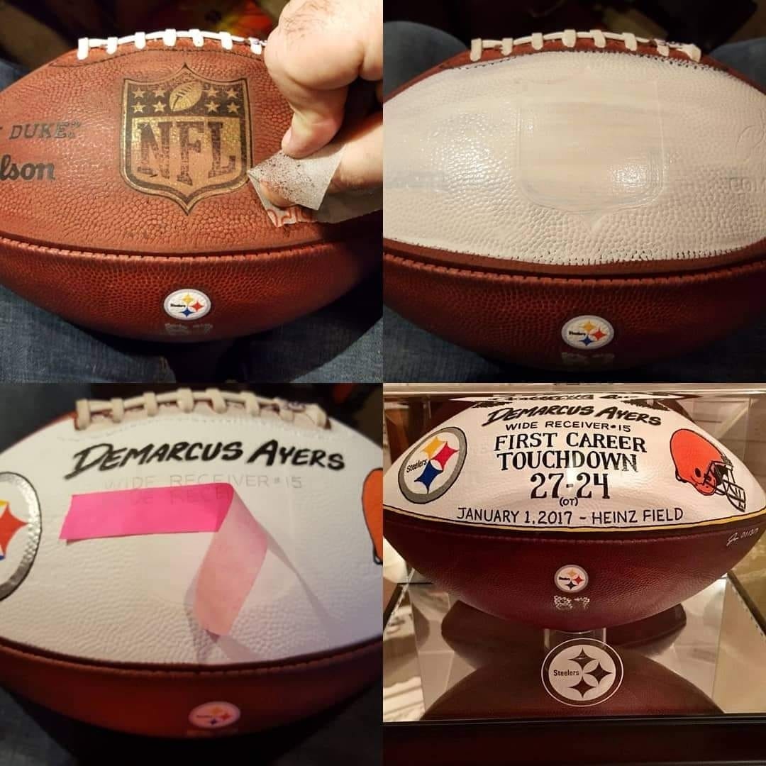 In no time, he was painting footballs to put in the Pro Football Hall of Fame and on ESPN broadcasts.